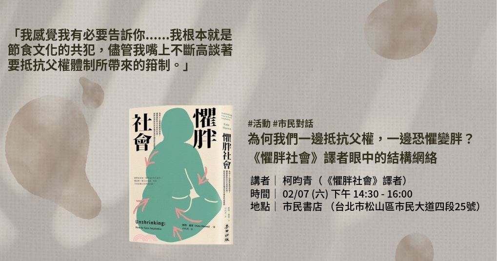 市民對話|為何我們一邊抵抗父權,一邊恐懼變胖?《懼胖社會》譯者眼中的結構之網 【Civic Dialogue】Why Do We Resist Patriarchy While Fearing Fatness?
