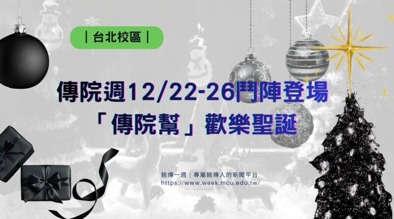 學期進入尾聲,台北校區將於12/22-26(五)迎來今年度最後系院週活動之「傳院週」。本屆以《兄弟叫我出來幫 抱歉我是傳院幫》為主題,由傳播學院學會組成「傳院幫」聯手規劃一系列主題活動,從開幕式、SNG日、院週晚會到鬼屋、遊戲日與系烤,打造結合戲劇感與街頭風格的節慶週,為校園聖誕增添既熱血又充滿故事感的氛圍。