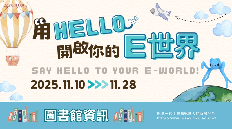 你今天跟幾個人打招呼了嗎? 每年11月21日是「世界哈囉日(World Hello Day)」,提倡用簡單的問候取代冷漠與衝突。銘傳大學圖書館以此為靈感,推出「用Hello開啟你的E世界——電子資源探索挑戰」,活動自11/10(一)至11/28(五)舉行,邀請全校師生以不同語言的「Hello」展開任務,探索圖書館電子資源的無限可能。