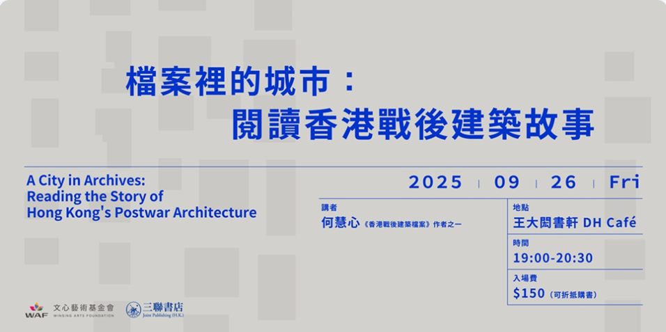 本次新書分享會由《香港戰後建築檔案》作者之一何慧心主講,分享她如何透過翻閱舊檔案、蒐集與重繪圖像,重新認識自己未曾親歷的年代,並從日常生活的觀察出發,閱讀香港這座城市的歷史故事。她將講述一些出版過程中未被收錄的建築檔案與個人偏愛的空間故事,並思考亞洲戰後建築保存的取捨與挑戰。