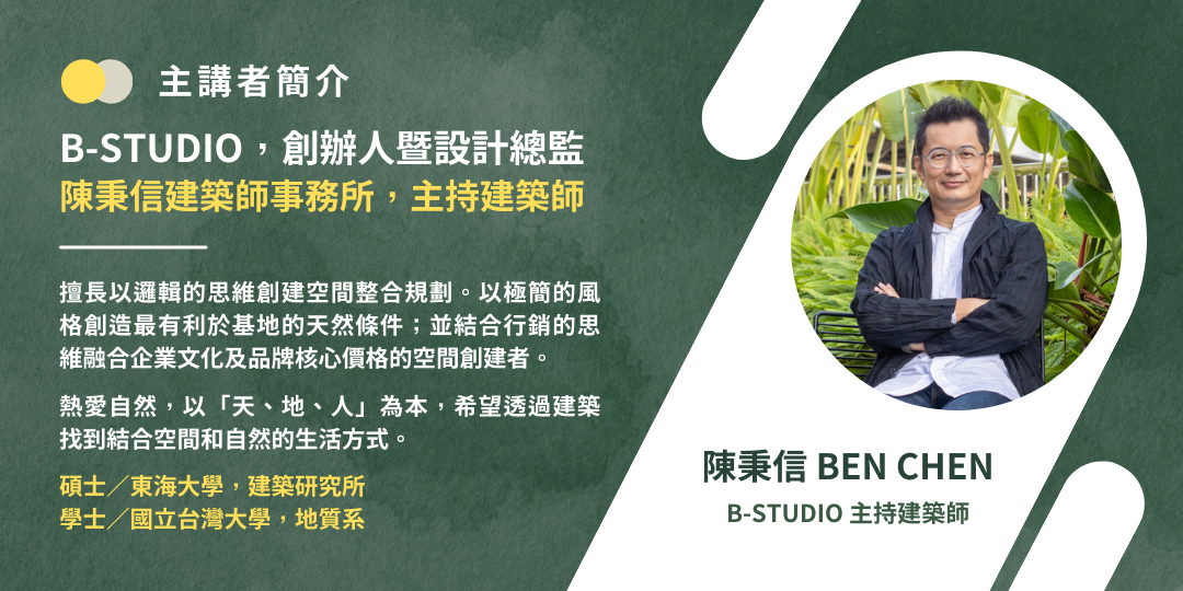 主講者 Speaker:陳秉信(Ben Chen)/ B-Studio主持建築師 Principal Architect, B-Studio