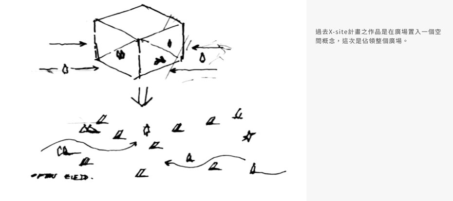 「X-site 計畫」(2014~)以美術館戶外廣場為基地,每年公開徵選一件實驗性的臨時裝置提案。從建築結構、當代藝術、環境研究、公眾參與等多元角度,鼓勵創新實驗的跨域創作與公共性交織的整合性計畫,激發公眾對公共空間、城市環境與人類發展等議題的探討與想像。「X-site 計畫」歷年來已支持許多新銳建築與藝術團隊實踐創作計畫,成為臺灣深具開放性、實驗性與培育中青世代的重要平台。