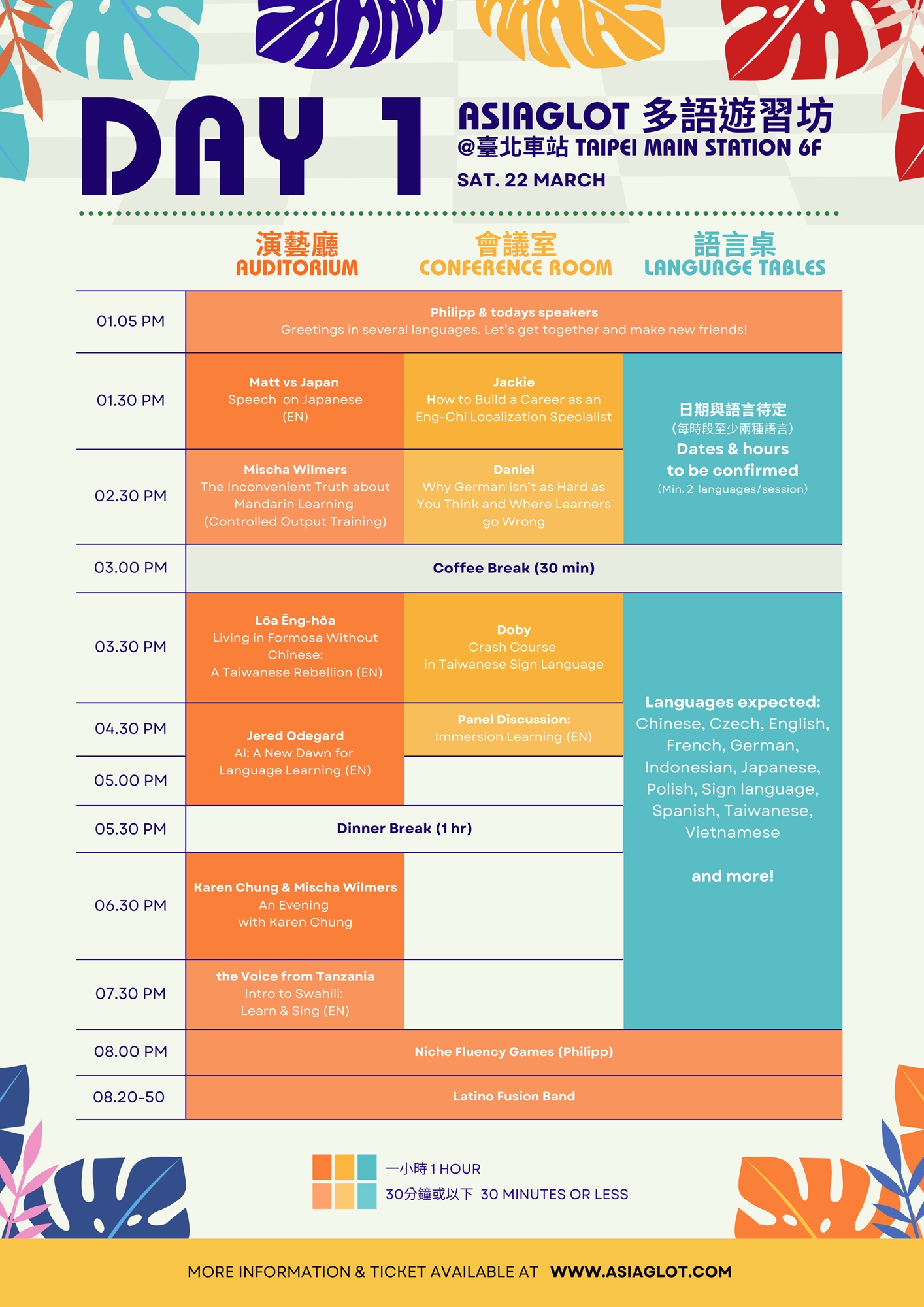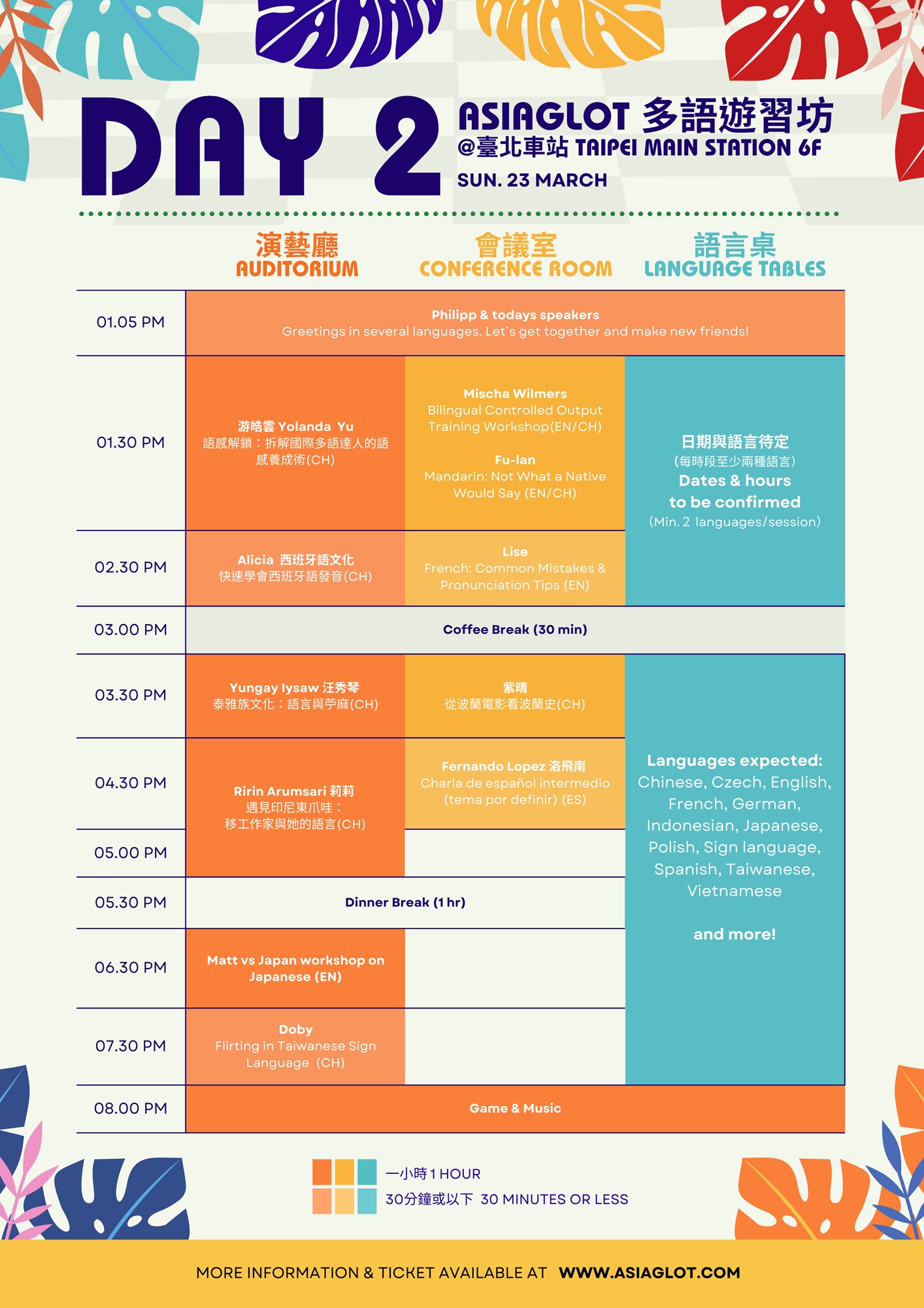 🔹 Language Exchange Tables: Covering languages including English, French, German, Spanish, Portuguese, Czech, Chinese, Taiwanese, Hakka, Taiwanese Sign Language, Japanese, Vietnamese and more!