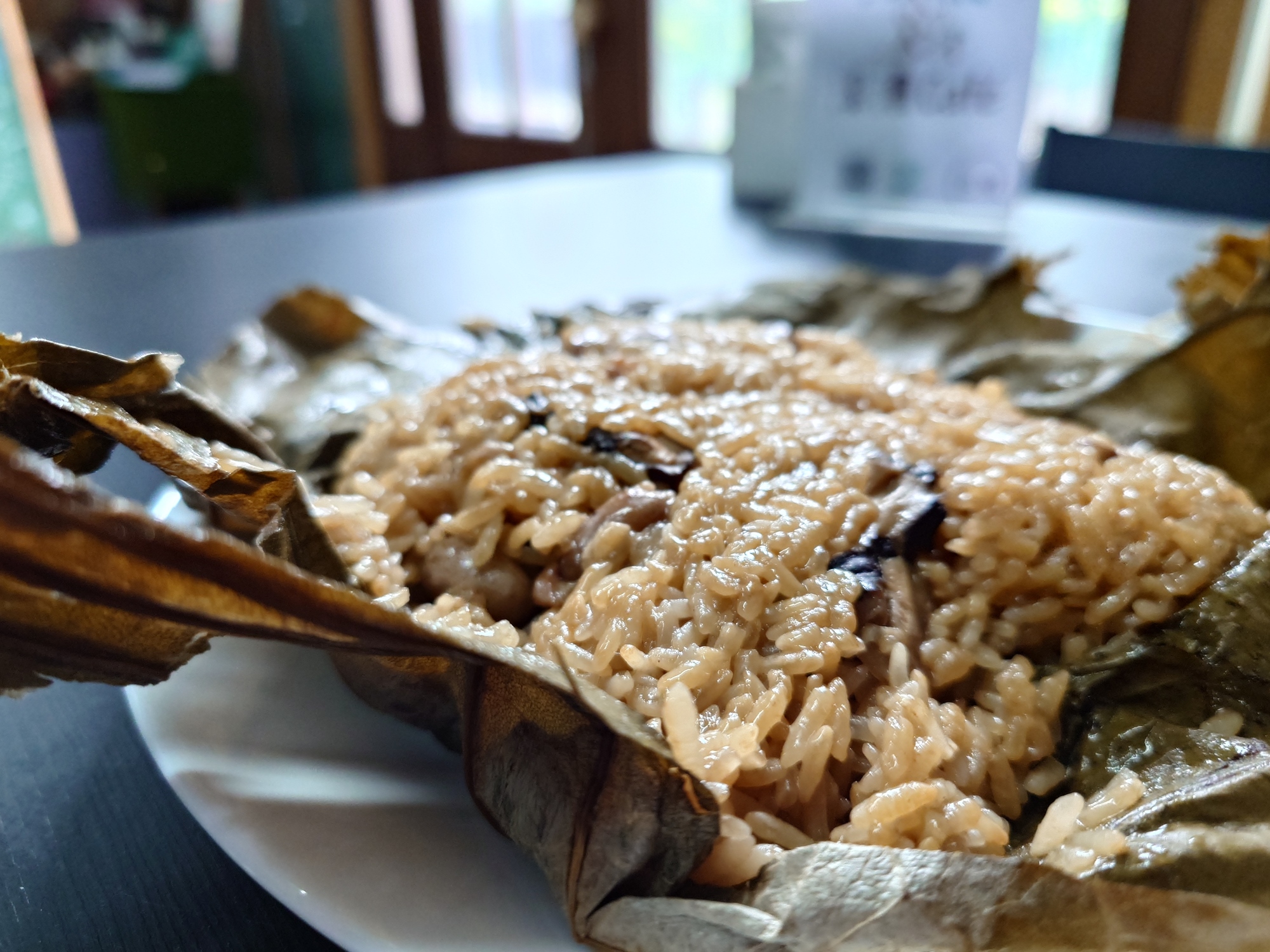 使用土雞腿肉製作的農村奢華品「清香荷葉糯米雞」,