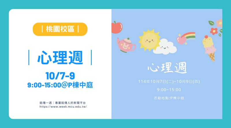心理系學會將於10/7-9每天09:00至15:00在P棟中...