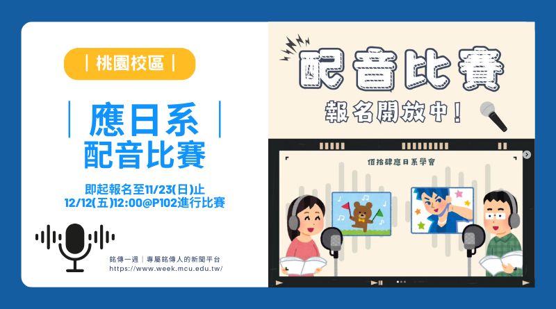 應用日語學系將於12/12(五)12:00-13:40在P102教室舉辦「日語配音比賽」,邀請對聲音演出、語言...