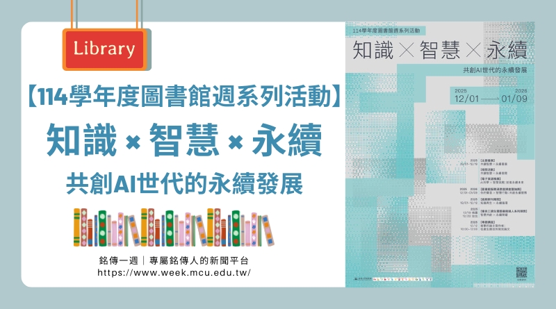 114學年度圖書館週以「知識 × 智慧 × 永續:共創AI世代的永續發展」為核心主題,自2025/12/1至2...