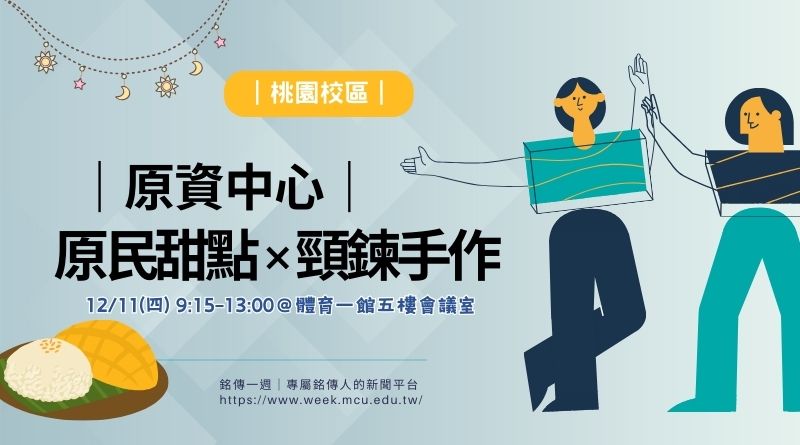 桃園校區原資中心將於12/11(四)09:15–13:00在體育一館五樓會議室舉辦「原民頸鍊 × 葉葉包好運D...
