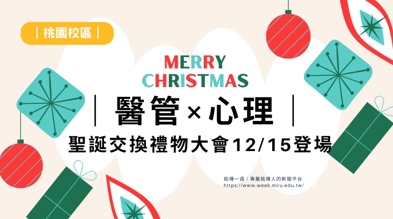 聖誕節腳步將近,節慶氣氛也在校園漸漸升溫。醫管系與心理系將於12/15(一)18:10–21:00在P102會...