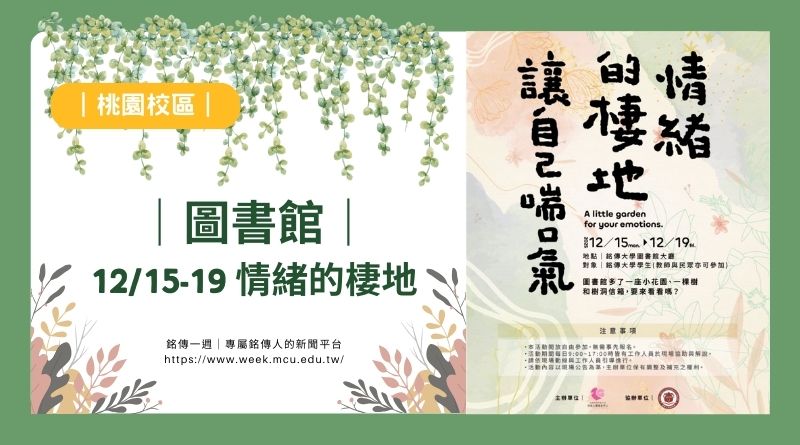 期末將至,學業、人際與未來的不確定感常讓情緒在日常中悄悄累積。為陪伴同學在繁忙的學期末找到片刻喘息,桃園市政府...